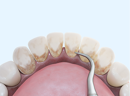 치아의 표면과 잇몸 안에 붙어 있는 치석과 치태를 치과용 기구를